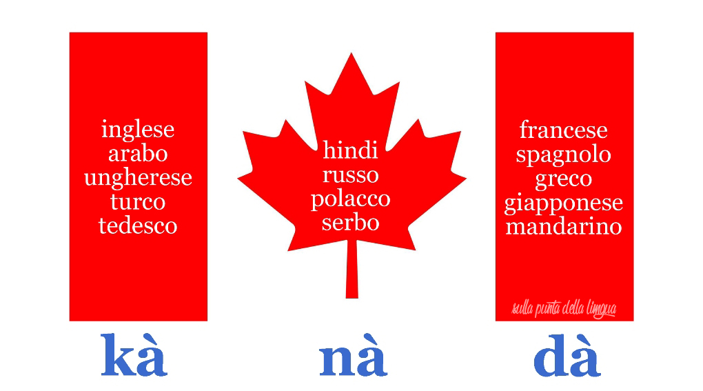 La parola Canada cambia di accento a seconda della lingua che la pronuncia. Alcune la dicono sdrucciola, sulla prima a, altri piana, altri tronca.